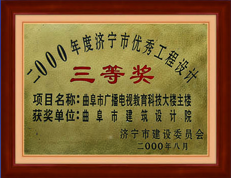 零零年曲阜市廣播電視教育科技大樓主樓濟寧市優(yōu)秀工程設(shè)計三等獎