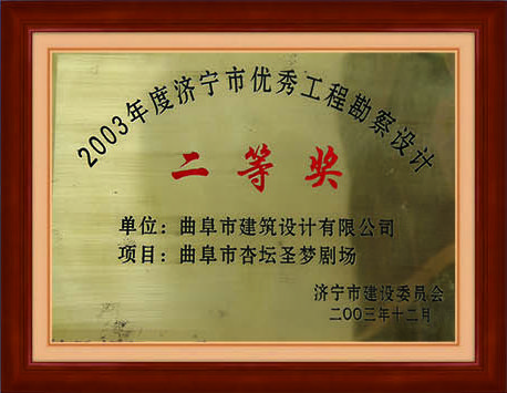 零三年曲阜市杏壇圣夢劇場濟寧市優(yōu)秀工程勘察設(shè)計二等獎