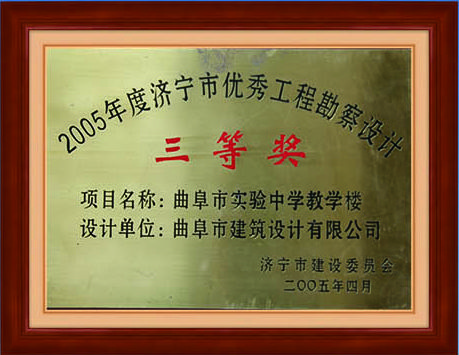 零五年曲阜市實驗中學(xué)教學(xué)樓濟寧市優(yōu)秀工程勘探設(shè)計三等獎